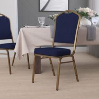 TOUGH ENOUGH SERIES CROWN BACK STACKING BANQUET CHAIR IN NAVY BLUE PATTERNED FABRIC - GOLD FRAME