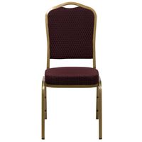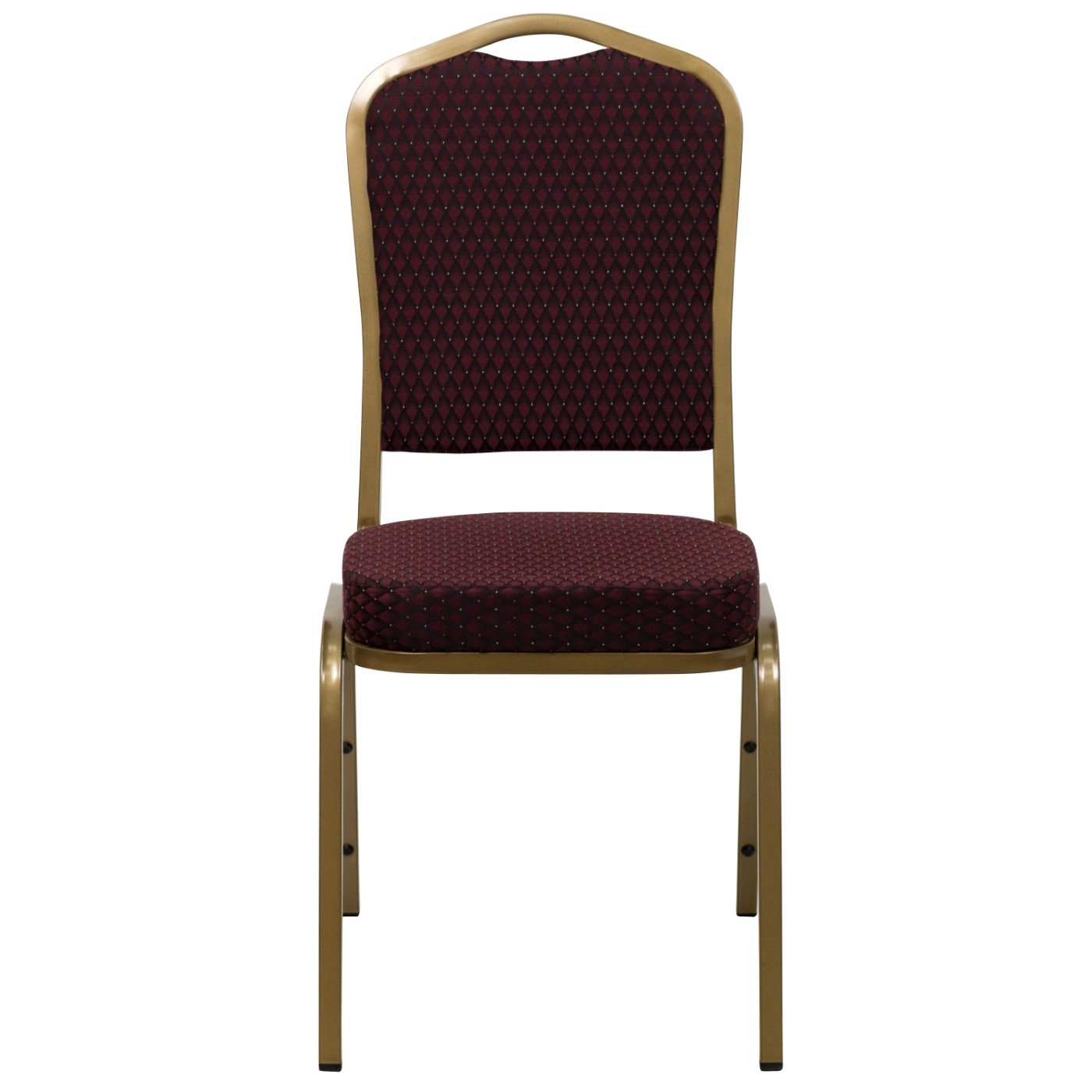 TOUGH ENOUGH SERIES CROWN BACK STACKING BANQUET CHAIR IN BURGUNDY PATTERNED FABRIC - GOLD FRAME