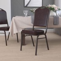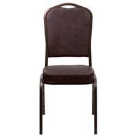 TOUGH ENOUGH SERIES CROWN BACK STACKING BANQUET CHAIR IN BROWN VINYL - COPPER VEIN FRAME
