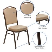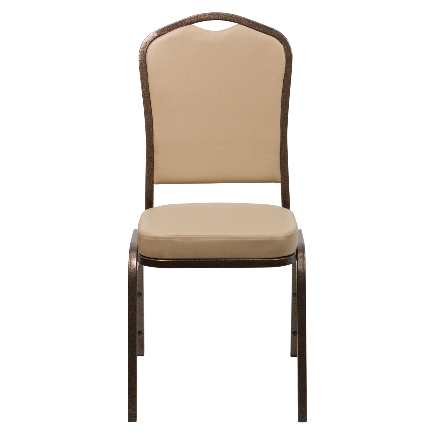 TOUGH ENOUGH SERIES CROWN BACK STACKING BANQUET CHAIR IN TAN VINYL - COPPER VEIN FRAME