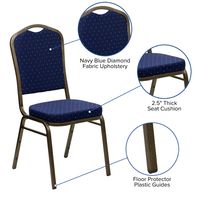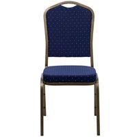 TOUGH ENOUGH SERIES CROWN BACK STACKING BANQUET CHAIR IN NAVY BLUE DOT PATTERNED FABRIC - GOLD VEIN FRAME