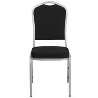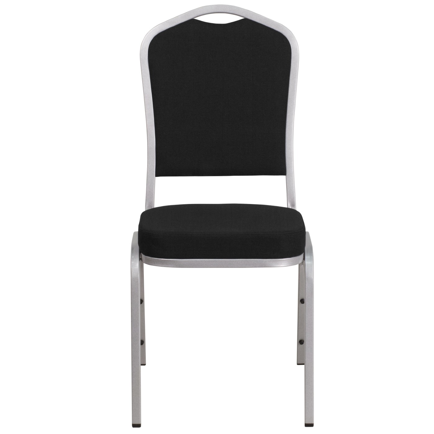 TOUGH ENOUGH SERIES CROWN BACK STACKING BANQUET CHAIR IN BLACK FABRIC - SILVER FRAME