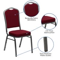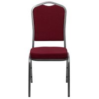 TOUGH ENOUGH SERIES CROWN BACK STACKING BANQUET CHAIR IN BURGUNDY FABRIC - SILVER VEIN FRAME