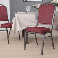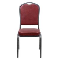 TOUGH ENOUGH SERIES CROWN BACK STACKING BANQUET CHAIR IN BURGUNDY VINYL - SILVER VEIN FRAME