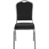 TOUGH ENOUGH SERIES CROWN BACK STACKING BANQUET CHAIR IN BLACK DOT PATTERNED FABRIC - SILVER VEIN FRAME