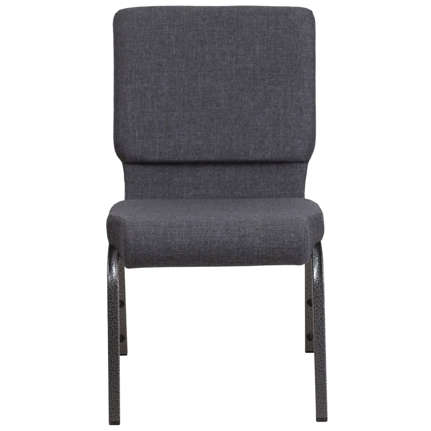 TOUGH ENOUGH SERIES 18.5''W STACKING CHURCH CHAIR IN DARK GRAY FABRIC - SILVER VEIN FRAME: FREE SHIPPING!