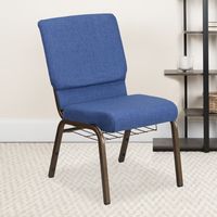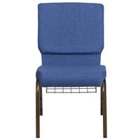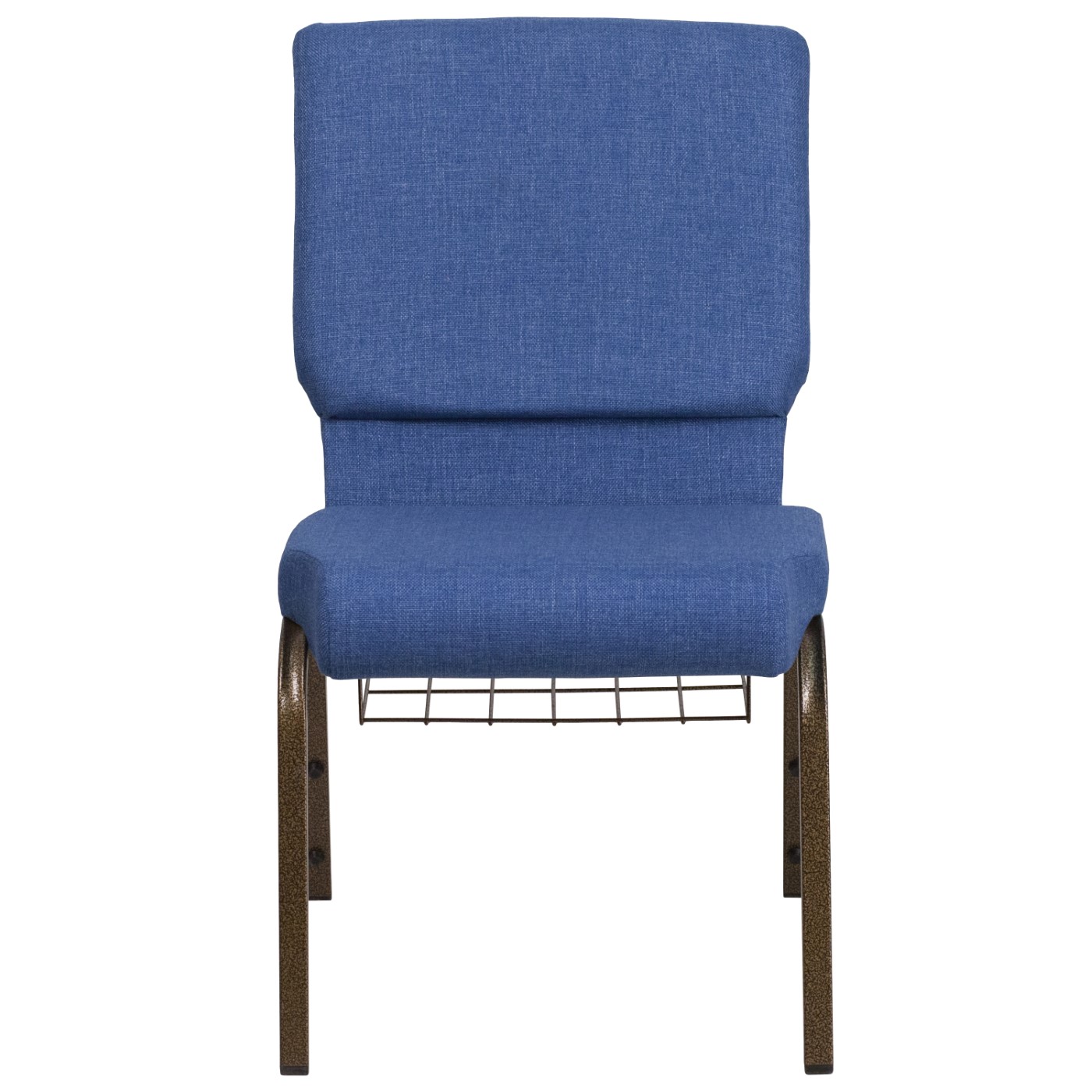 TOUGH ENOUGH SERIES 18.5''W CHURCH CHAIR IN BLUE FABRIC WITH CUP BOOK RACK - GOLD VEIN FRAME: FREE SHIPPING!