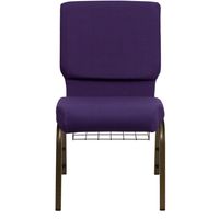 TOUGH ENOUGH SERIES 18.5''W CHURCH CHAIR IN ROYAL PURPLE FABRIC WITH CUP BOOK RACK - GOLD VEIN FRAME