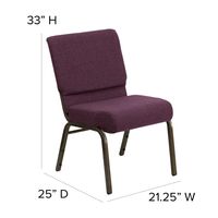 TOUGH ENOUGH SERIES 21''W STACKING CHURCH CHAIR IN PLUM FABRIC - GOLD VEIN FRAME: FREE SHIPPING!