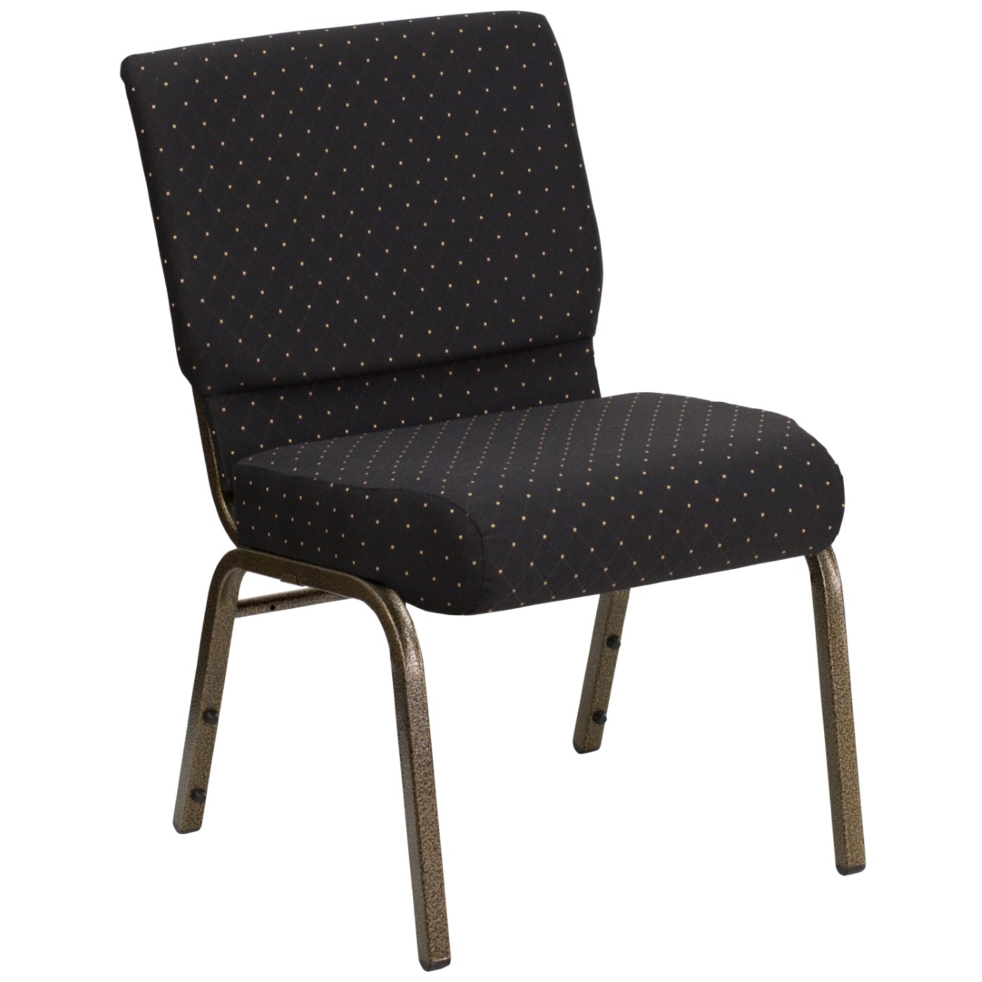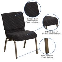TOUGH ENOUGH SERIES 21''W STACKING CHURCH CHAIR IN BLACK DOT PATTERNED FABRIC - GOLD VEIN FRAME: FREE SHIPPING!