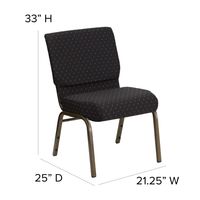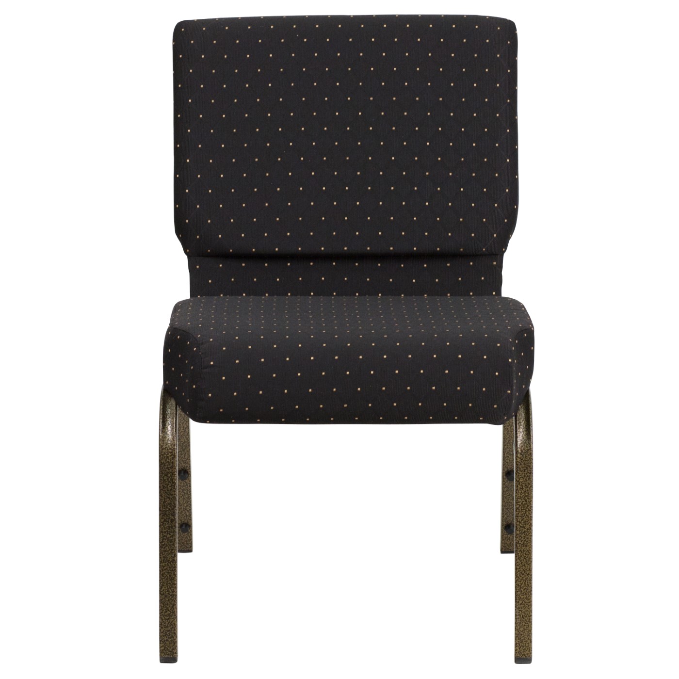 TOUGH ENOUGH SERIES 21''W STACKING CHURCH CHAIR IN BLACK DOT PATTERNED FABRIC - GOLD VEIN FRAME