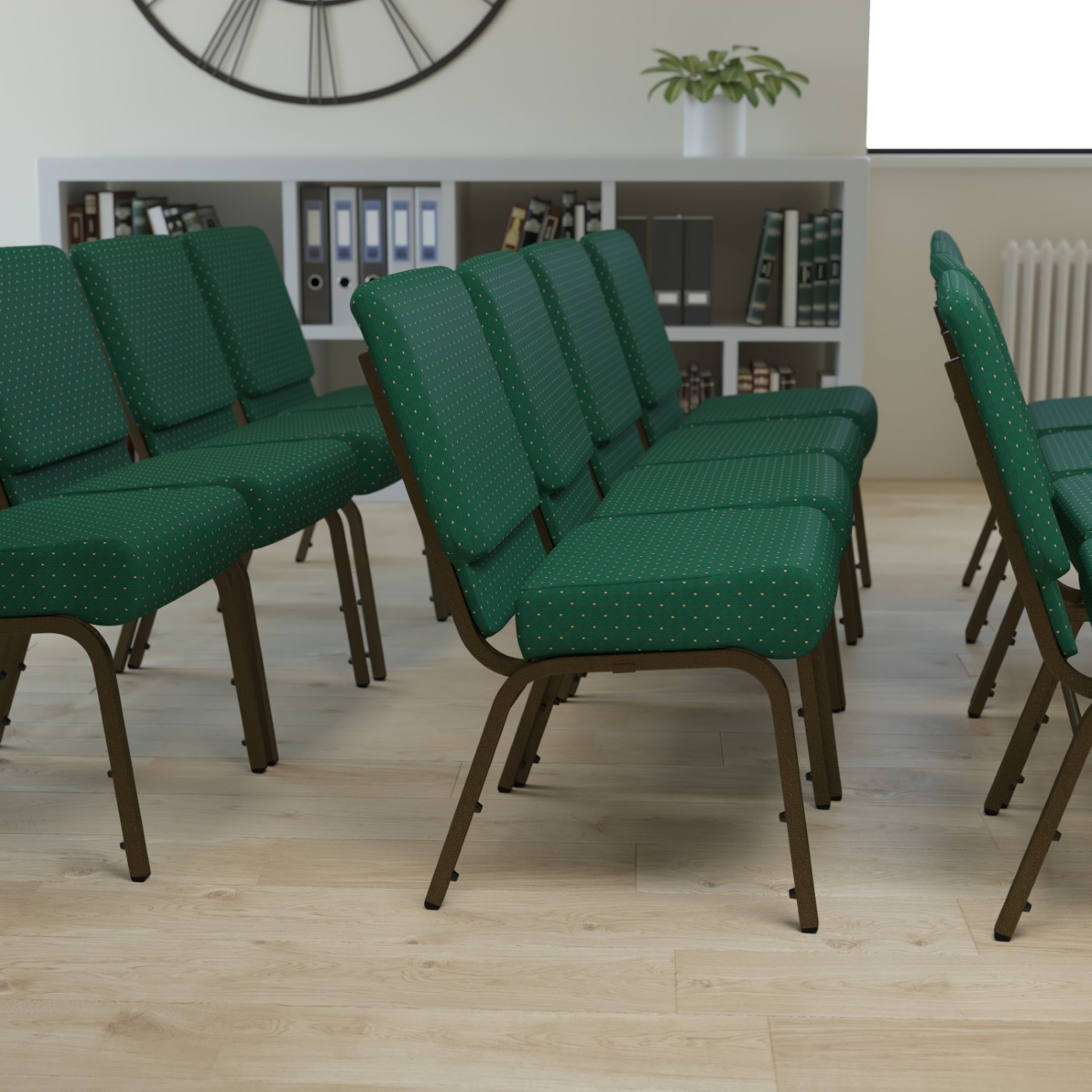TOUGH ENOUGH SERIES 21''W STACKING CHURCH CHAIR IN HUNTER GREEN DOT PATTERNED FABRIC - GOLD VEIN FRAME: FREE SHIPPING!
