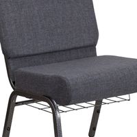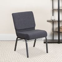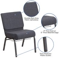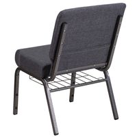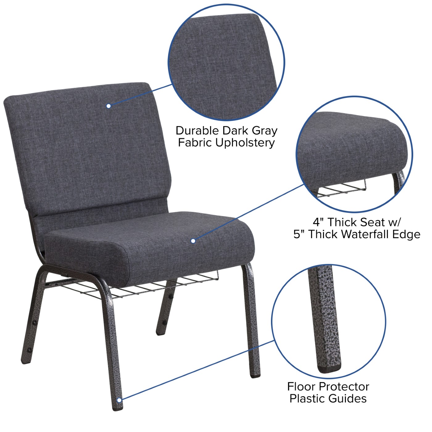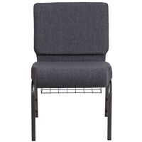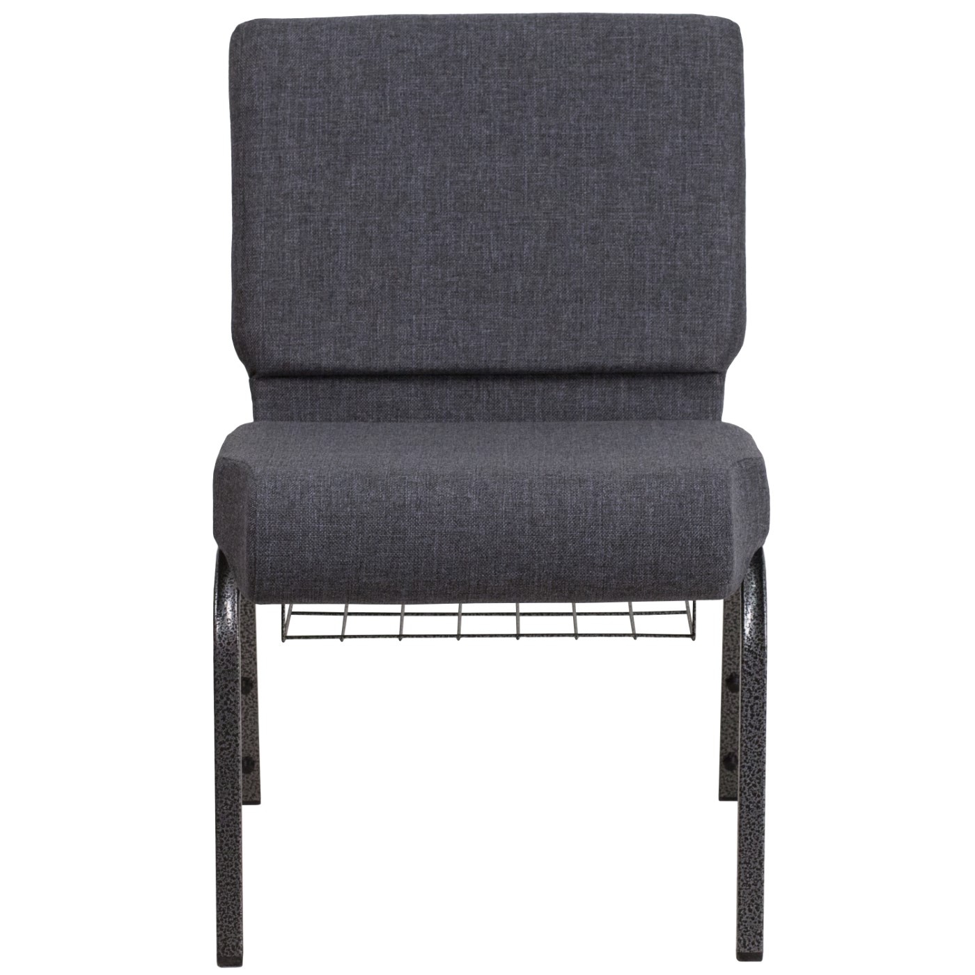 TOUGH ENOUGH SERIES 21''W CHURCH CHAIR IN DARK GRAY FABRIC WITH BOOK RACK - SILVER VEIN FRAME: FREE SHIPPING!
