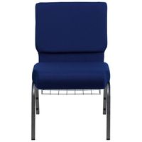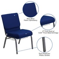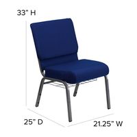 TOUGH ENOUGH SERIES 21''W CHURCH CHAIR IN NAVY BLUE FABRIC WITH CUP BOOK RACK - SILVER VEIN FRAME: FREE SHIPPING!