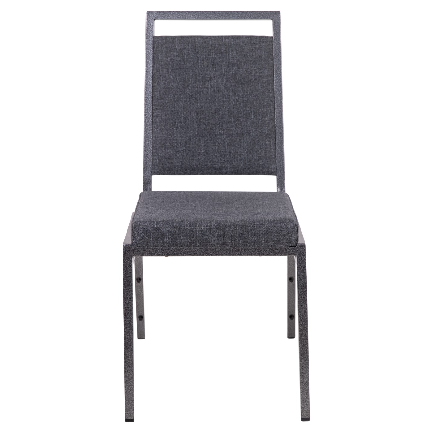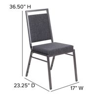 TOUGH ENOUGH SERIES SQUARE BACK STACKING BANQUET CHAIR IN DARK GRAY FABRIC WITH SILVERVEIN FRAME