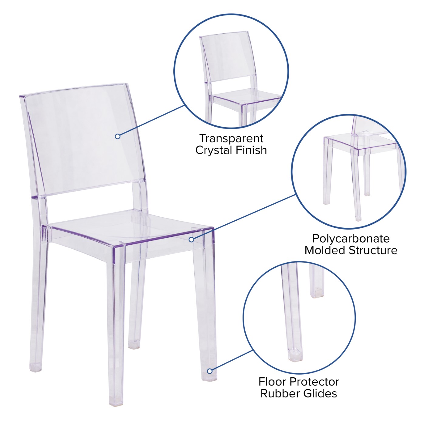 PHANTOM SERIES TRANSPARENT STACKING SIDE CHAIR: FREE SHIPPING!