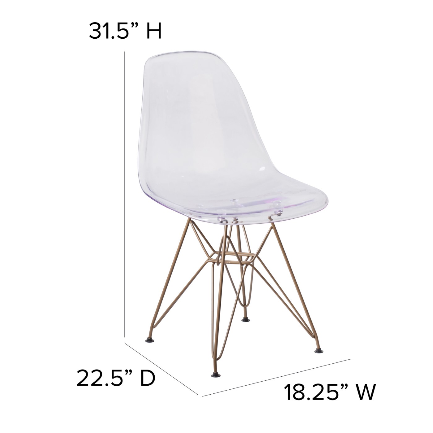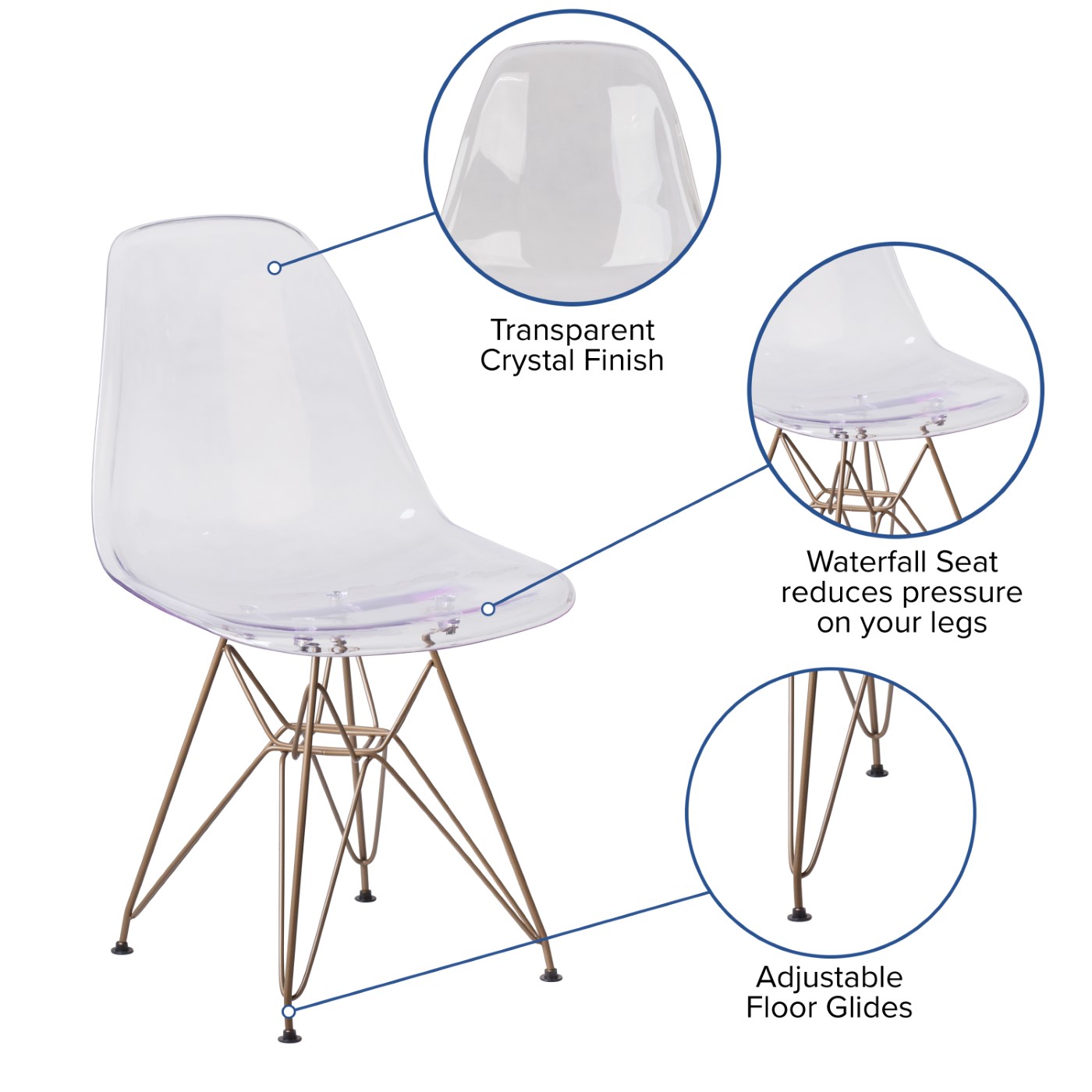 ELON SERIES GHOST CHAIR WITH GOLD METAL BASE: FREE SHIPPING!