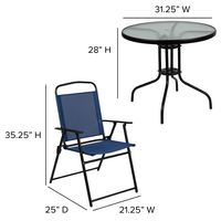 NANTUCKET 6 PIECE NAVY PATIO GARDEN SET WITH UMBRELLA TABLE AND SET OF 4 FOLDING CHAIRS