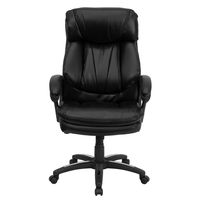 HIGH BACK BLACK LEATHERSOFT EXECUTIVE SWIVEL ERGONOMIC OFFICE CHAIR WITH PLUSH HEADREST, EXTENSIVE PADDING AND ARMS