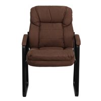 BROWN MICROFIBER EXECUTIVE SIDE RECEPTION CHAIR WITH LUMBAR SUPPORT AND SLED BASE
