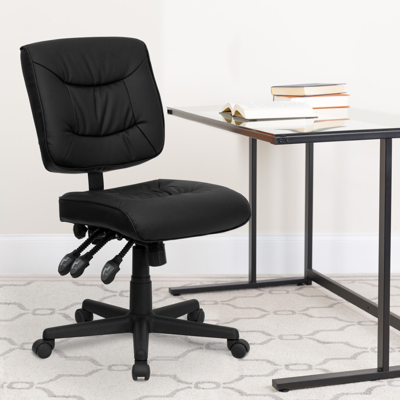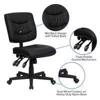 MID-BACK BLACK LEATHERSOFT MULTIFUNCTION SWIVEL ERGONOMIC TASK OFFICE CHAIR