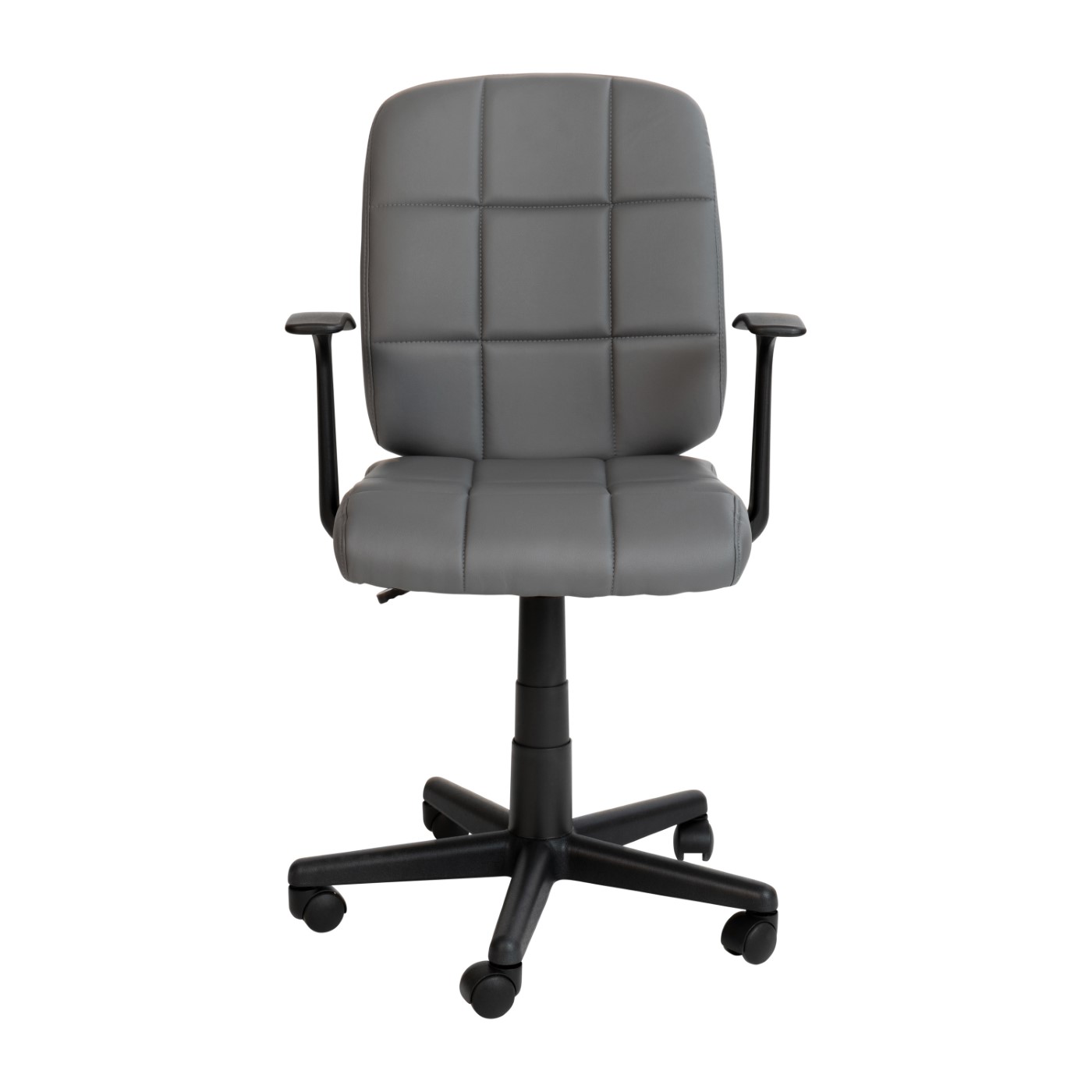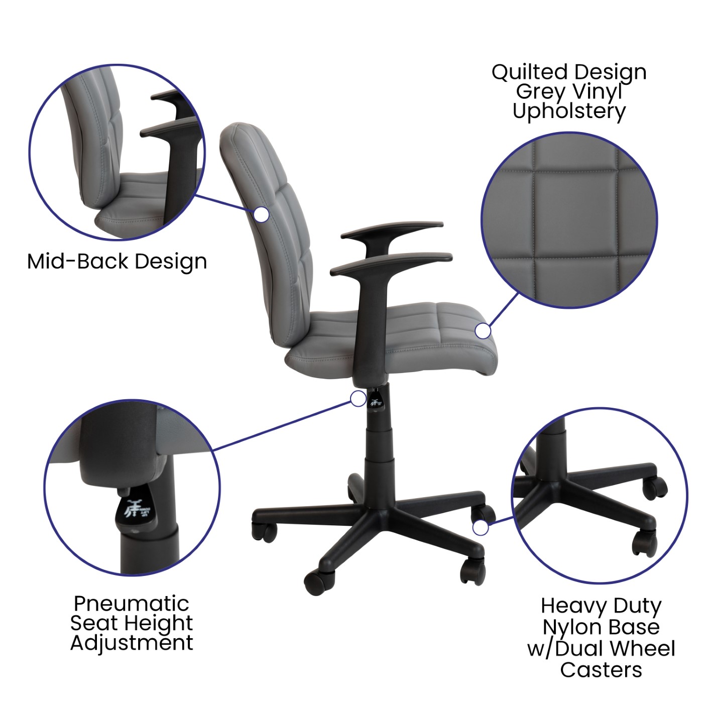 MID-BACK GRAY QUILTED VINYL SWIVEL TASK OFFICE CHAIR WITH ARMS: FREE SHIPPING!