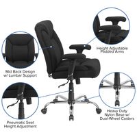 TOUGH ENOUGH SERIES BIG & TALL 400 LB. RATED BLACK FABRIC DEEP TUFTED SWIVEL ERGONOMIC TASK OFFICE CHAIR WITH ADJUSTABLE ARMS