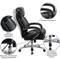 BIG & TALL OFFICE CHAIR | BLACK LEATHERSOFT SWIVEL EXECUTIVE DESK CHAIR WITH WHEELS