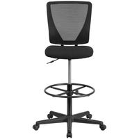 ERGONOMIC MID-BACK MESH DRAFTING CHAIR WITH BLACK FABRIC SEAT AND ADJUSTABLE FOOT RING
