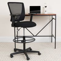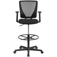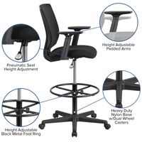 ERGONOMIC MID-BACK MESH DRAFTING CHAIR WITH BLACK FABRIC SEAT, ADJUSTABLE FOOT RING AND ADJUSTABLE ARMS