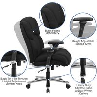 - Black Fabric Back and Seat, Height Adjustable Padded Arms
