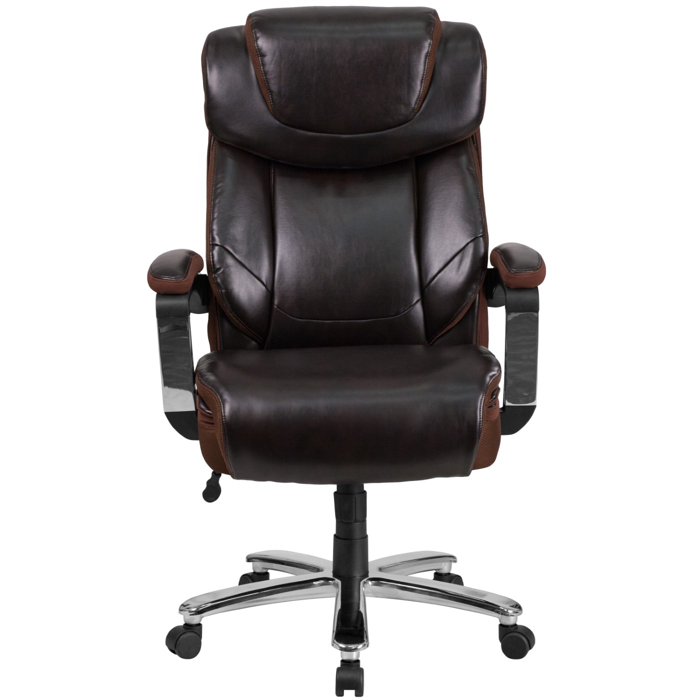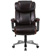 BIG & TALL OFFICE CHAIR | BROWN LEATHERSOFT EXECUTIVE SWIVEL OFFICE CHAIR WITH HEADREST AND WHEELS