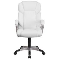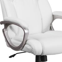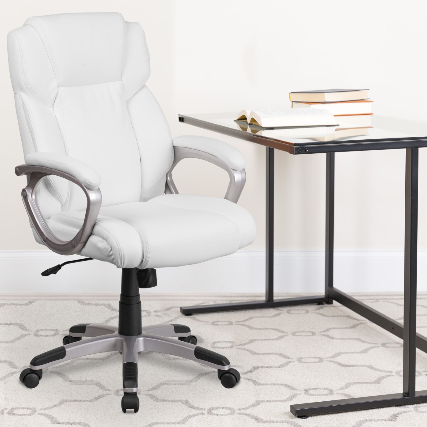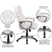 MID-BACK WHITE LEATHERSOFT EXECUTIVE SWIVEL OFFICE CHAIR WITH PADDED ARMS