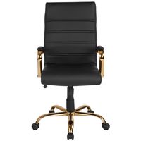 HIGH BACK BLACK LEATHERSOFT EXECUTIVE SWIVEL OFFICE CHAIR WITH GOLD FRAME AND ARMS