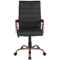 HIGH BACK BLACK LEATHERSOFT EXECUTIVE SWIVEL OFFICE CHAIR WITH ROSE GOLD FRAME AND ARMS