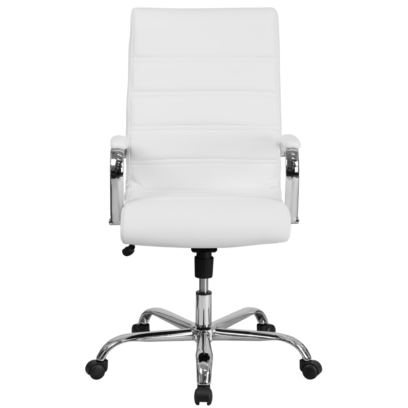 HIGH BACK WHITE LEATHERSOFT EXECUTIVE SWIVEL OFFICE CHAIR WITH CHROME FRAME AND ARMS: FREE SHIPPING!