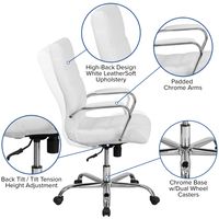 HIGH BACK WHITE LEATHERSOFT EXECUTIVE SWIVEL OFFICE CHAIR WITH CHROME FRAME AND ARMS