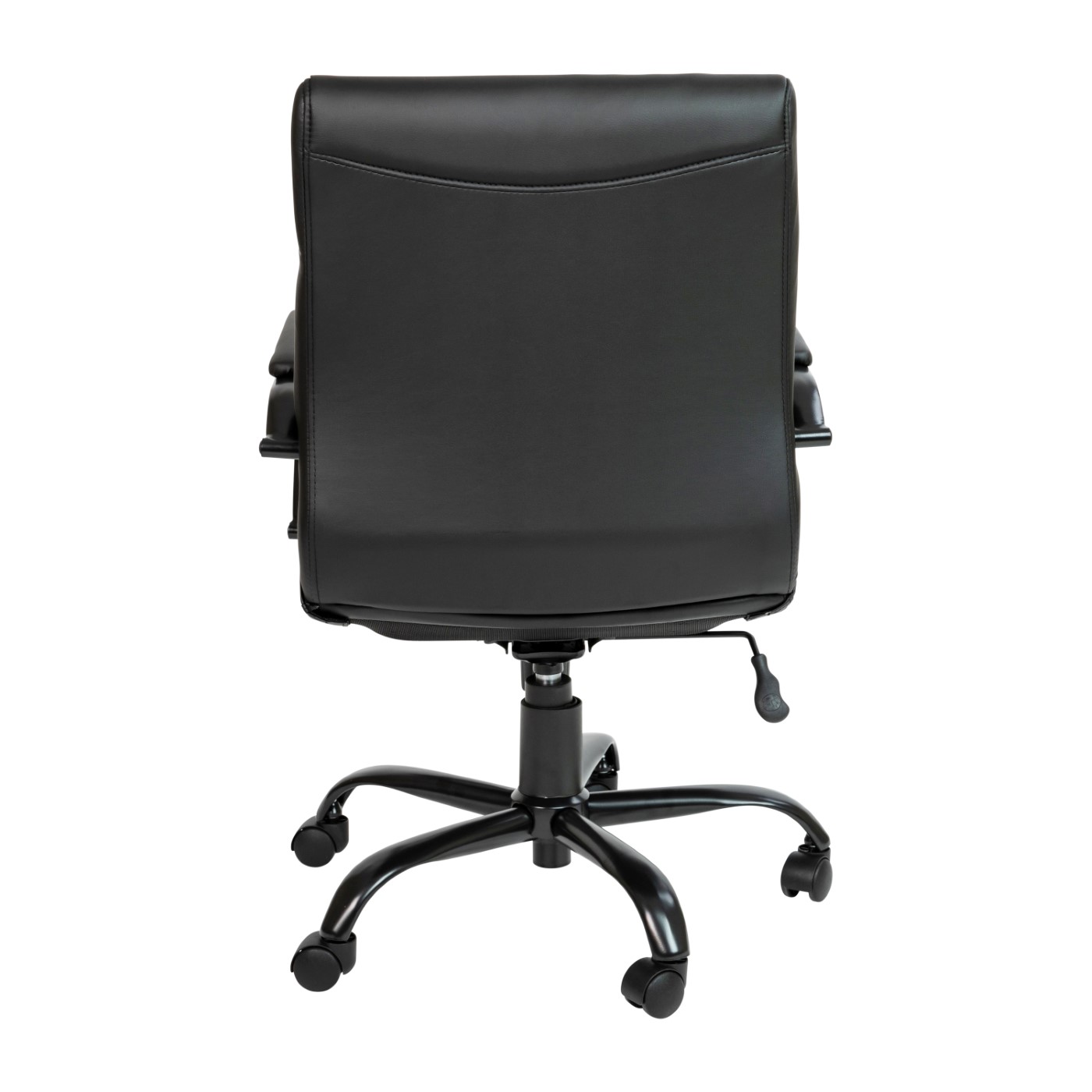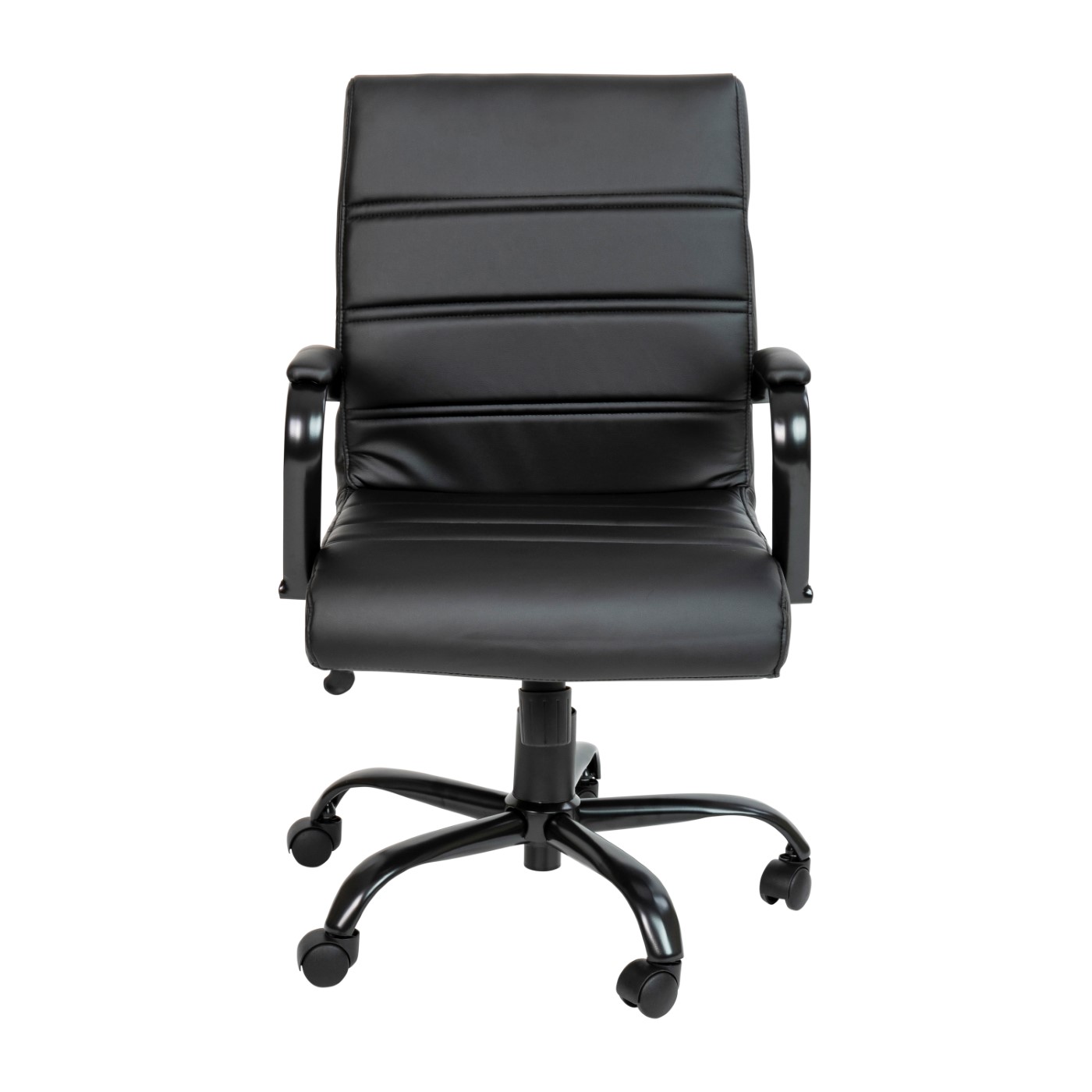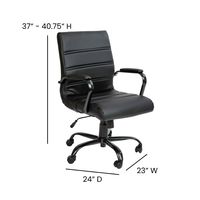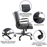 MID-BACK BLACK LEATHERSOFT EXECUTIVE SWIVEL OFFICE CHAIR WITH BLACK FRAME AND ARMS