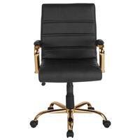 MID-BACK BLACK LEATHERSOFT EXECUTIVE SWIVEL OFFICE CHAIR WITH GOLD FRAME AND ARMS