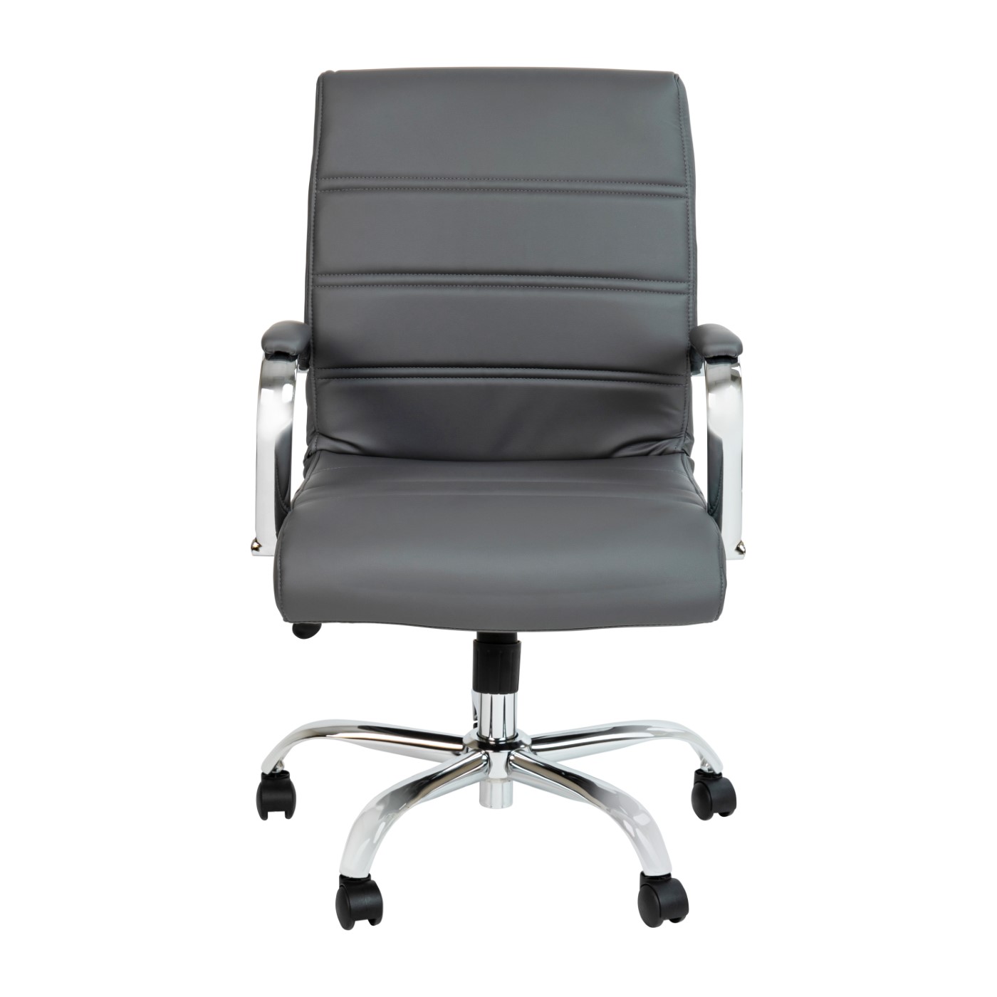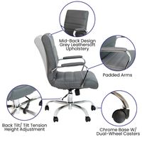 MID-BACK GRAY LEATHERSOFT EXECUTIVE SWIVEL OFFICE CHAIR WITH CHROME FRAME AND ARMS