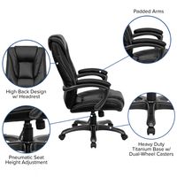 HIGH BACK BLACK LEATHERSOFT LAYERED UPHOLSTERED EXECUTIVE SWIVEL ERGONOMIC OFFICE CHAIR WITH SMOKE METAL BASE AND ARMS: FREE SHIPPING!