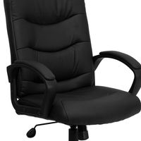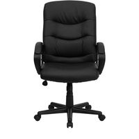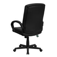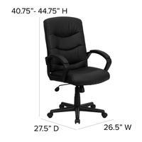MID-BACK BLACK LEATHERSOFT EXECUTIVE SWIVEL OFFICE CHAIR WITH THREE LINE HORIZONTAL STITCH BACK AND ARMS