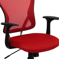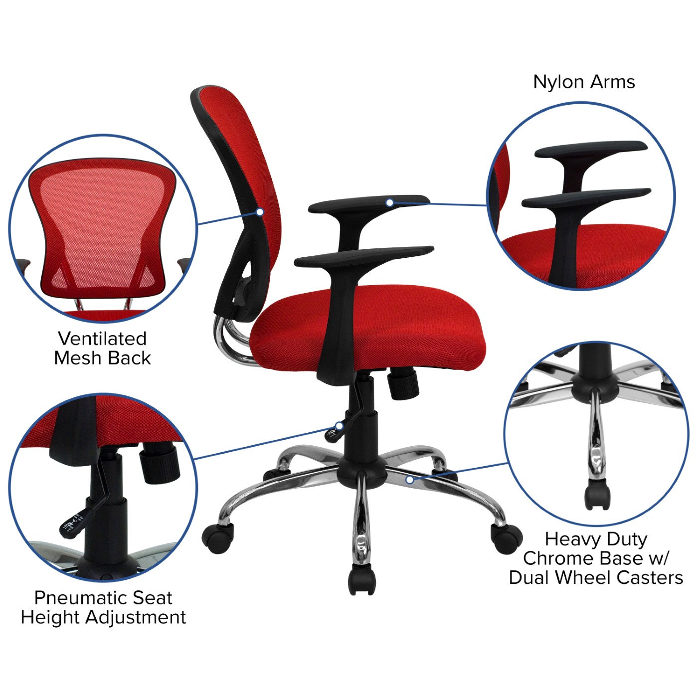 MID-BACK RED MESH SWIVEL TASK OFFICE CHAIR WITH CHROME BASE AND ARMS