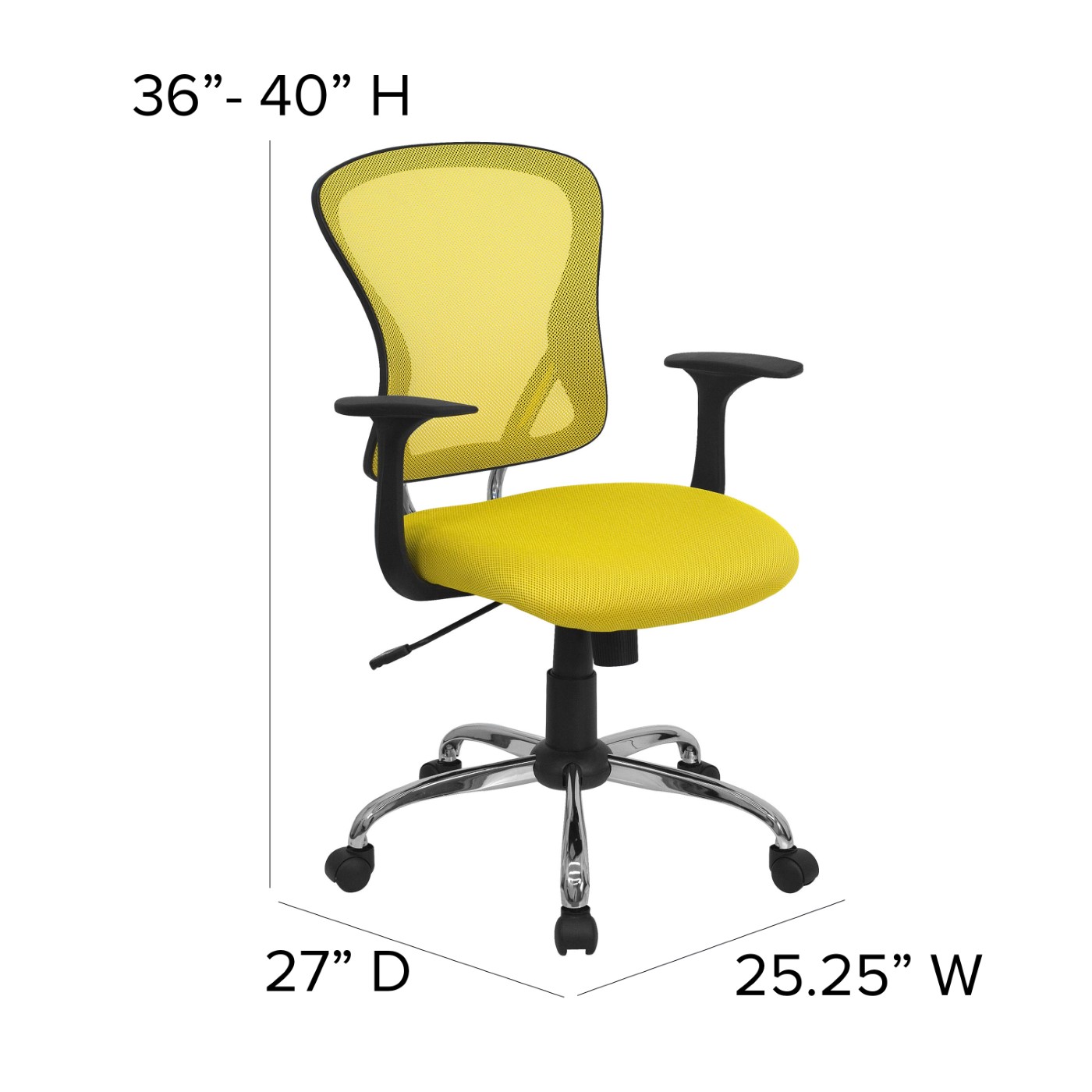 MID-BACK YELLOW MESH SWIVEL TASK OFFICE CHAIR WITH CHROME BASE AND ARMS