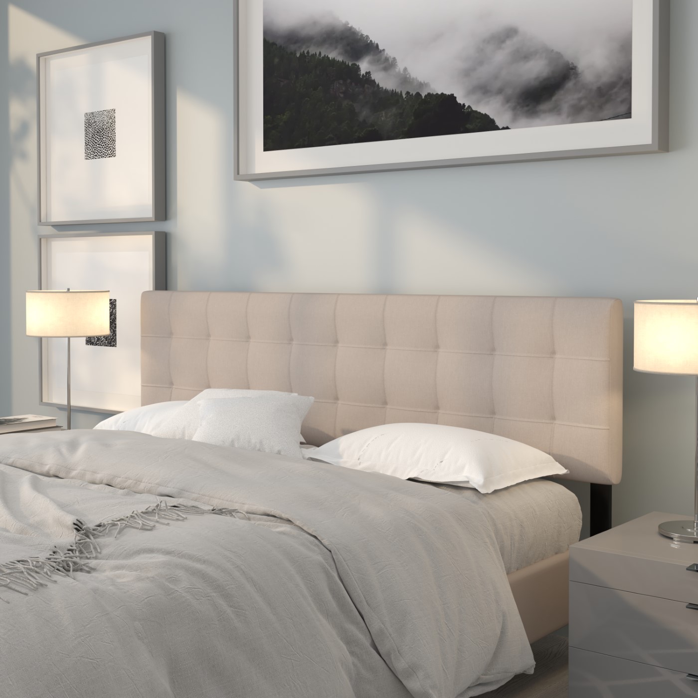 BEDFORD TUFTED UPHOLSTERED KING SIZE HEADBOARD IN BEIGE FABRIC: FREE SHIPPING!
