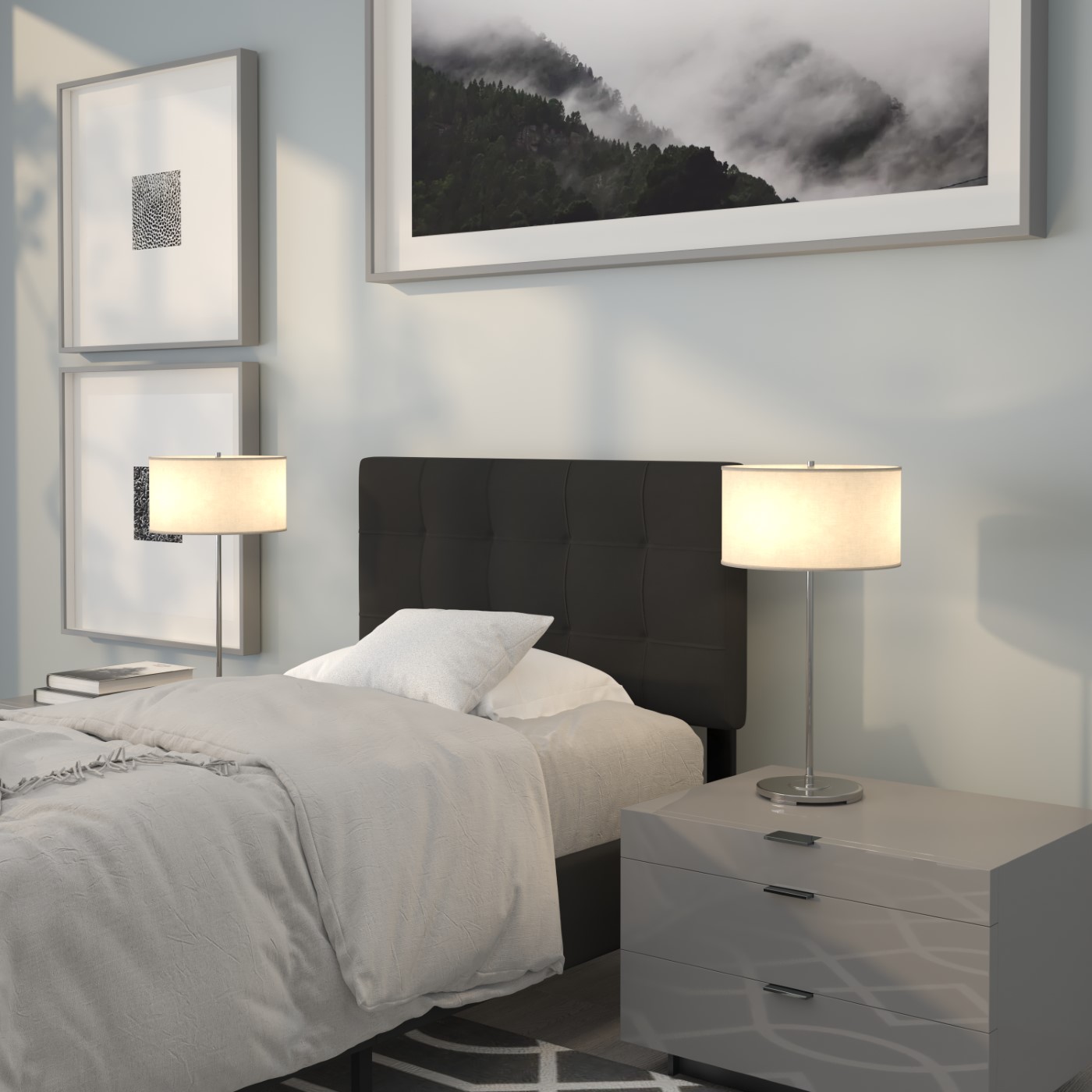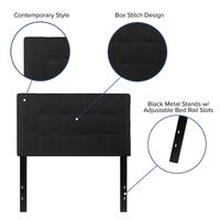 BEDFORD TUFTED UPHOLSTERED TWIN SIZE HEADBOARD IN BLACK FABRIC