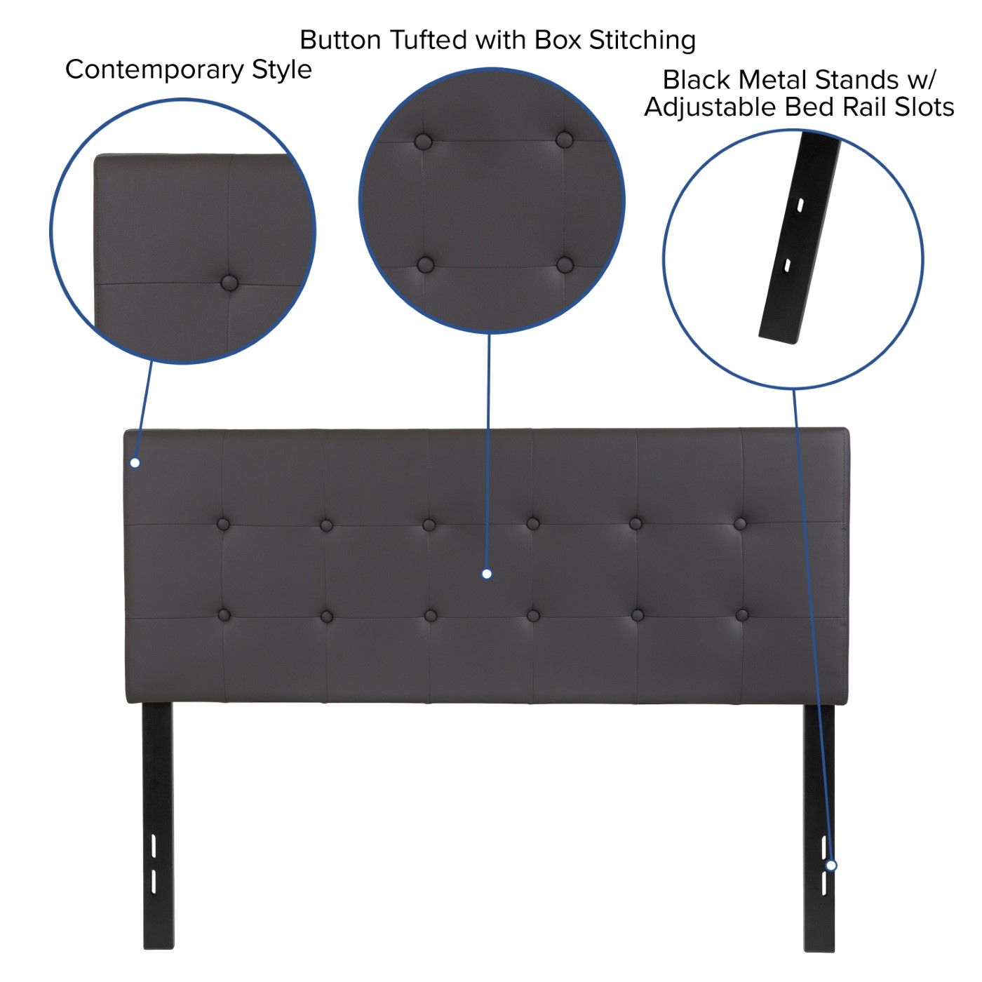 LENNOX TUFTED UPHOLSTERED FULL SIZE HEADBOARD IN GRAY VINYL: FREE SHIPPING!