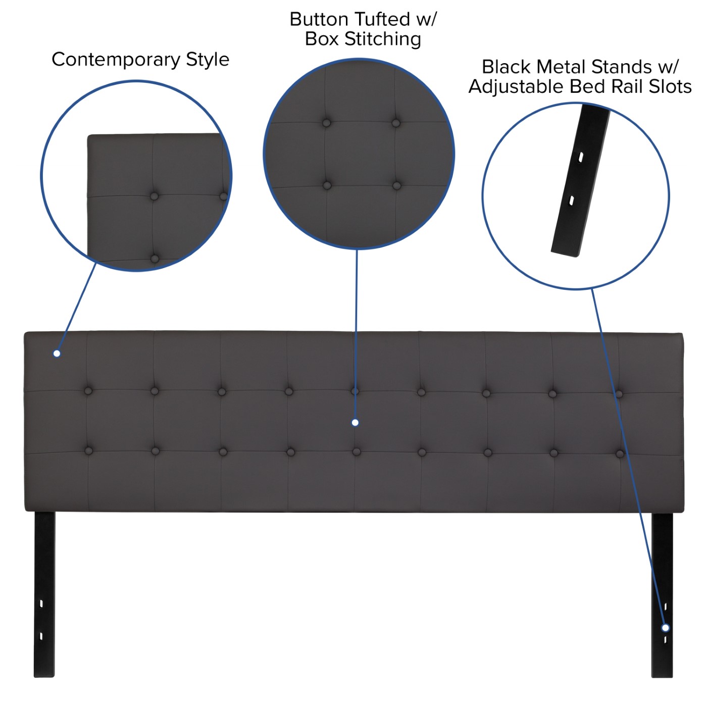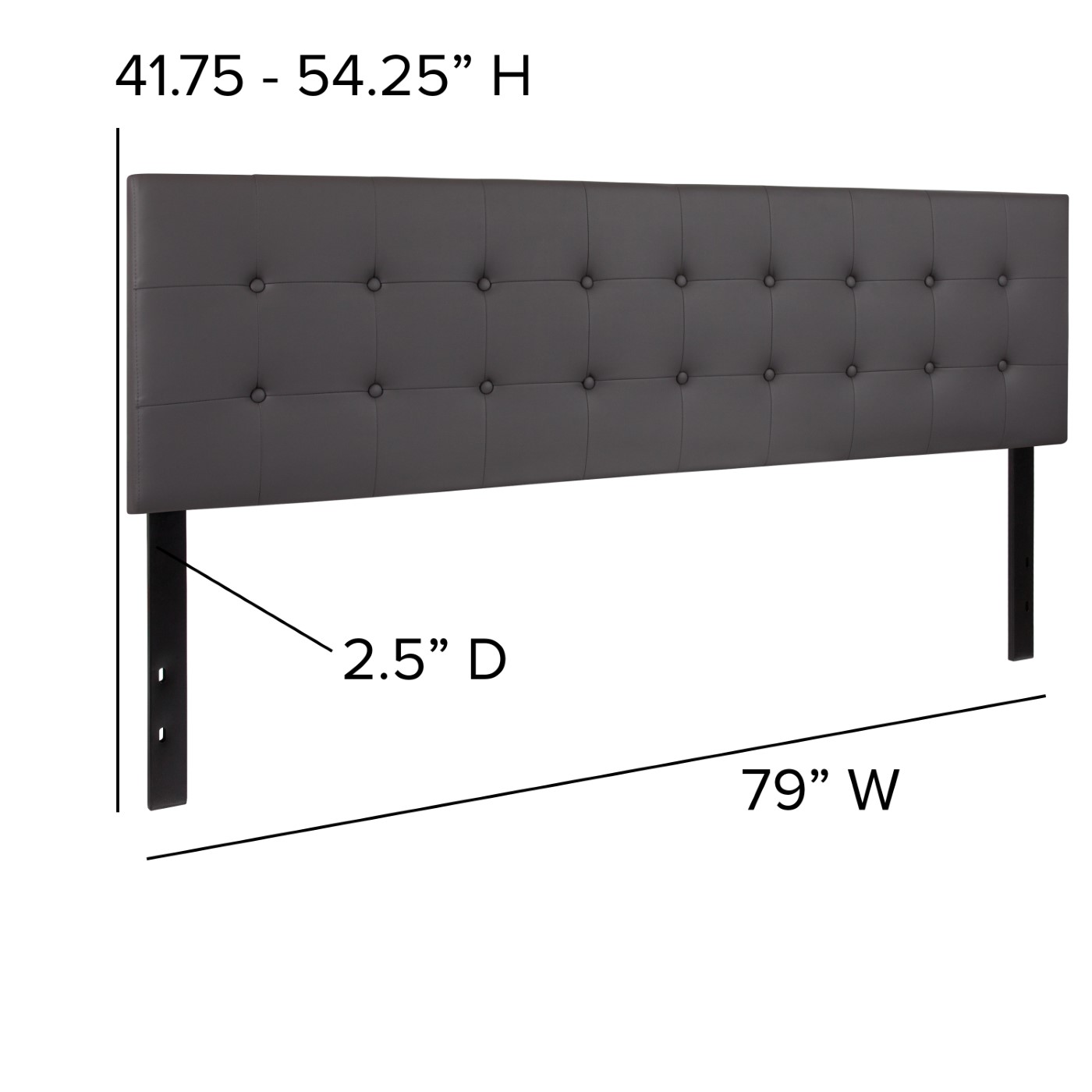 LENNOX TUFTED UPHOLSTERED KING SIZE HEADBOARD IN GRAY VINYL