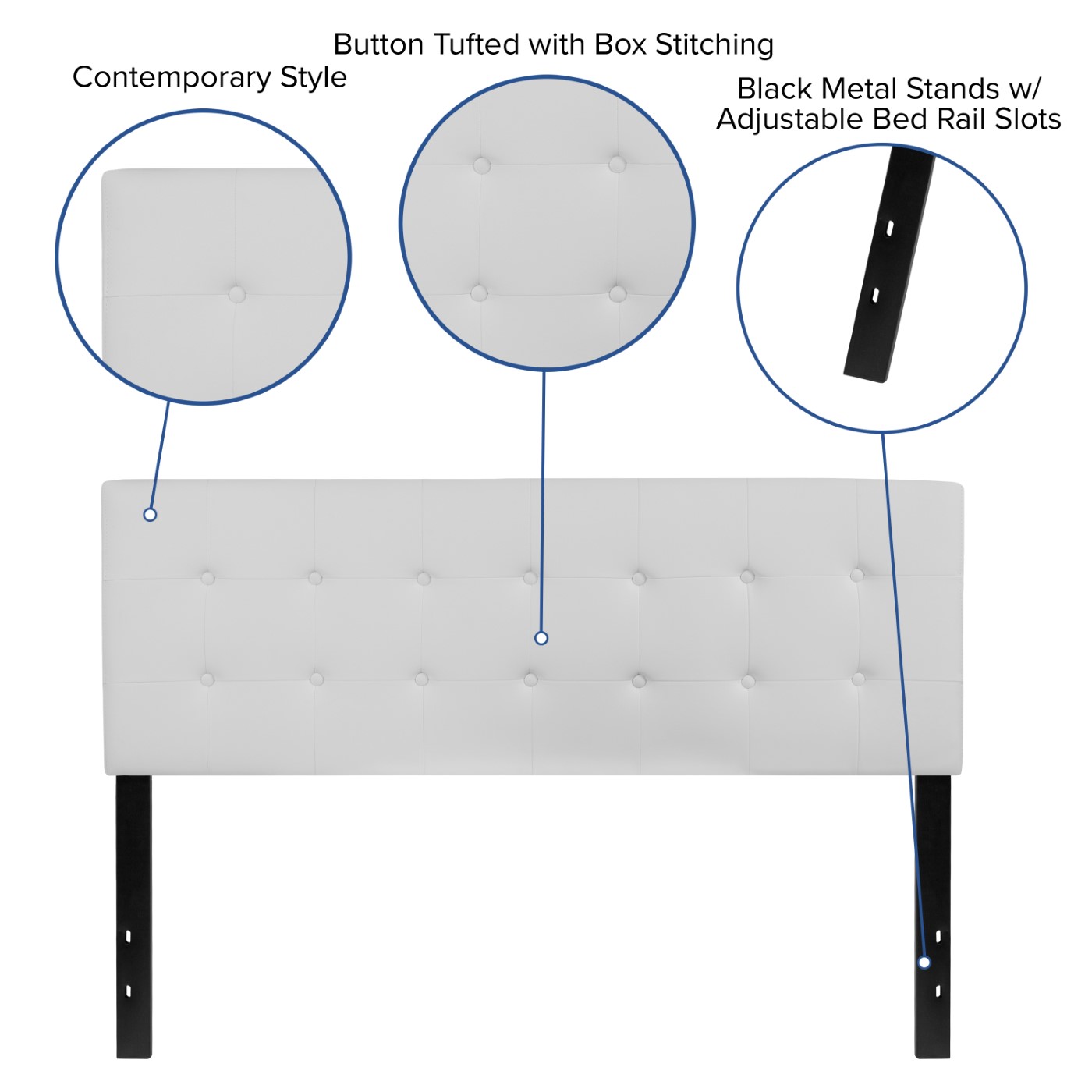 LENNOX TUFTED UPHOLSTERED QUEEN SIZE HEADBOARD IN WHITE VINYL