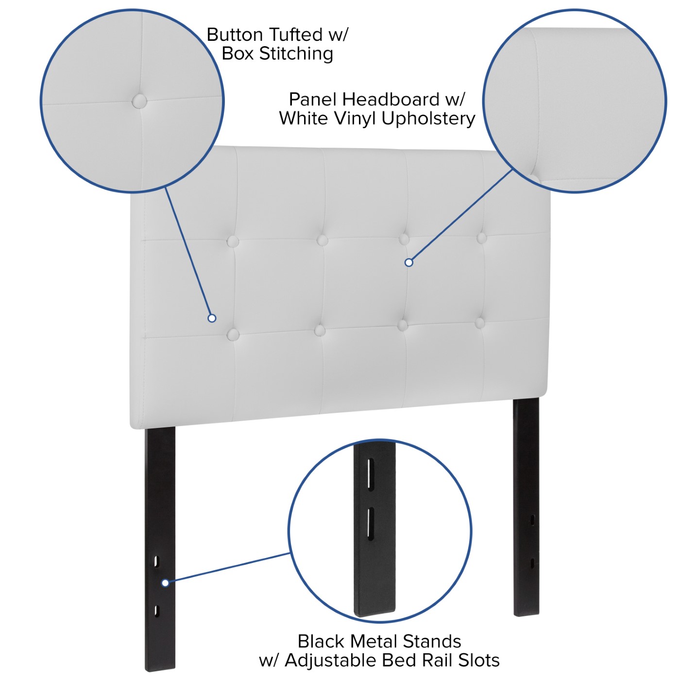 LENNOX TUFTED UPHOLSTERED TWIN SIZE HEADBOARD IN WHITE VINYL
